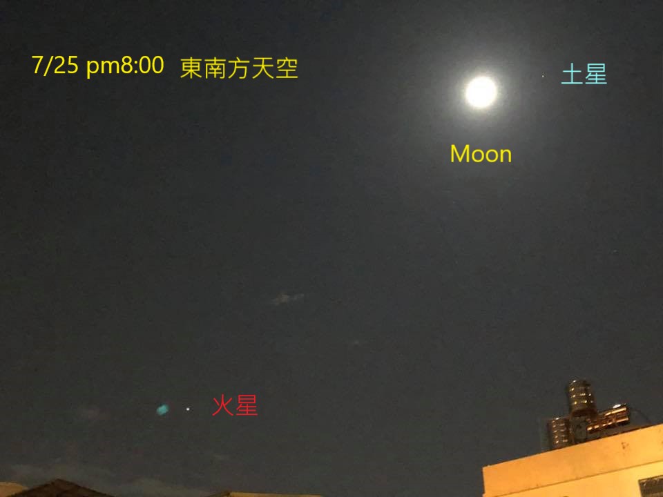 Comments on 7/25 pm8:00 東南方天空月亮土星火星