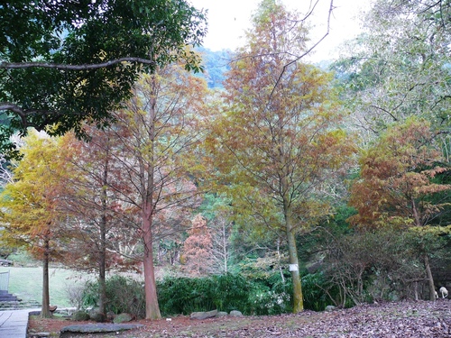 石門水庫交通便利為台灣北部低海拔最佳賞楓地點, 整個石門水庫園區大約有 3000餘棵樹齡超過30年的青楓及槭樹. 每年寒流過境後, 園區的楓葉轉紅與水庫的山水美景結合成桃園最佳的自然旅遊景點. 石門水庫園區的高線楓林步道, 中線槭林公園,溪洲公園及南苑停車場區都是賞楓景點. 石門水庫溪洲公園的幾棵落羽松, 更是美! 美! 美!
