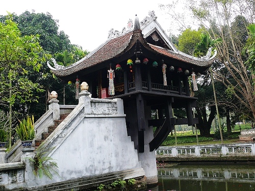 西元 1904年前的一晚上 , 越南李朝的太宗夢到觀士音菩薩抱著小孩站在蓮花上, 不久之後太宗就得一子, 於是就建了一座寺廟 (延祐寺) 來感謝夢中的觀士音菩薩, 這木造廟身豎立於水中一根直徑有 1.25 公尺的石柱上, 狀如蓮花, 這廟造型獨特, 所以又稱為一柱廟, 2006/05/04 以越南最獨特的寺廟建築, 列入金氏記錄.