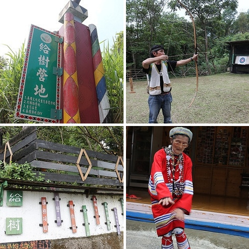好厲害的獵人陷阱, 只用 4支細細的樹枝, 就可以撐起 5公斤重的石板, 更讓人驚訝的是一棵樹一條繩子, 外加 2片小板子就可以吊起一條野豬! 在給樹營地, 還可以 DIY 竹筒飯, 實際使用泰雅獵人的弓箭及彈力弓射箭, 體驗你是否能百步穿楊? 豐盛的泰雅風味午餐, 馬告炒蛋的好滋味絕對讓人還想多吃一碗飯, 超精彩的烏來泰雅部落遊食趣的泰雅體驗. 對了! 這裡還有一位好棒的給樹阿媽, 給大家表演最道地的泰雅舞蹈及歌唱.