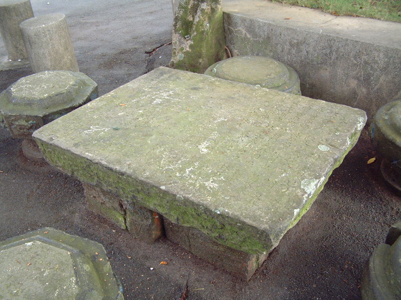 位於:楊廷里古道經過雞母嶺地區的永福宮廟前的大榕樹下。紀念碑物盡其用的橫躺在大樹下,當地居民移作為桌面使用。年代:日治時期
