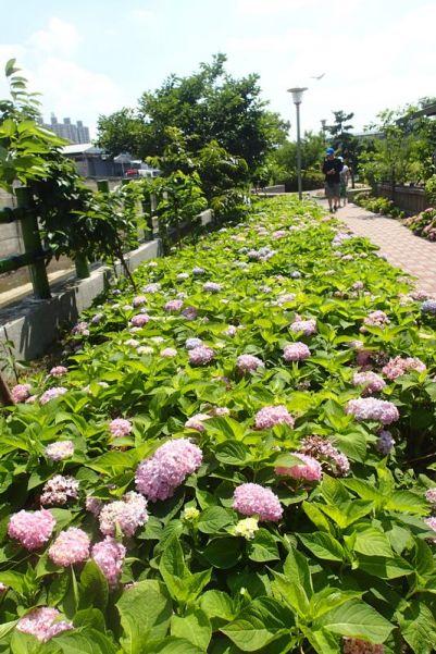 繡球花的季節,一般都是去竹子湖賞繡球花,看到奇摩的旅遊介紹泰山也有繡球花可賞,到泰山國中,在面對校門口左邊的小巷泰林路二段522巷進入,會看到巷底的人行道,即為的入口,沿著泰山國中校園外圍走,會看到叉路,左邊是黎明步道,可通往黎明公園,而右邊則是通往山腳公園
