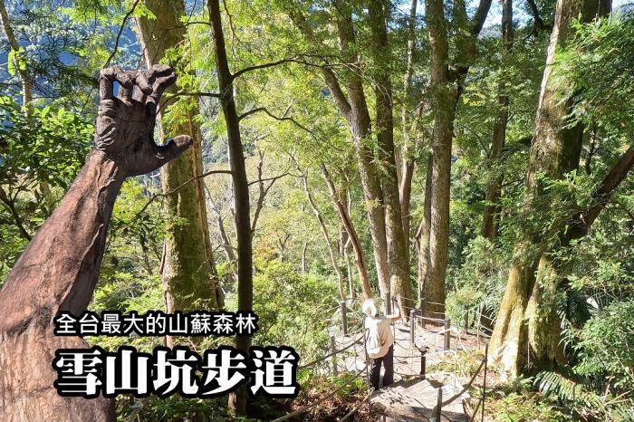 雪山坑登山步道位於台中市和平區桃山部落,是一條沿著泰雅族古老獵徑規劃而成的環山步道,步道全長約1.6公里,環狀一圈 (含產業道路) 約2.4公里。步道以環境友善工法鋪設,串連「櫸木林」、「山蘇森林」及「石虎」、「巨人之手」地景。