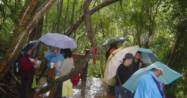 這次,老天爺對我們更好,給我們一次不一樣的天氣,讓我們經歷一次在大雨中,站在七星神木下,撐著雨傘吃中餐。或許真的肚子很餓,雨中進食,滋味真美,吃進去的不只食物,還有雨水。