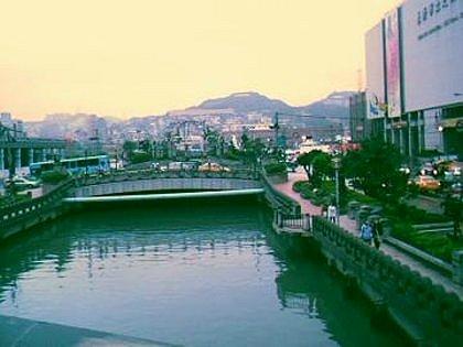 回程繞至松山慈祐宮(媽祖廟)。慈祐宮建廟250週年,有慶典,人山人海,一旁饒河街觀光夜市也熱鬧滾滾。本想跟大家進媽祖廟湊熱鬧, 但至廟門口已舉步維艱,索性放棄,我獨自繞往廟後方,爬階梯過河堤岸,往下走,一牆之隔,堤外便是幽靜的基隆河。雖說幽靜, 但偶爾對岸玩耍的頑童發射沖天炮,還是傳來陣陣噪音。