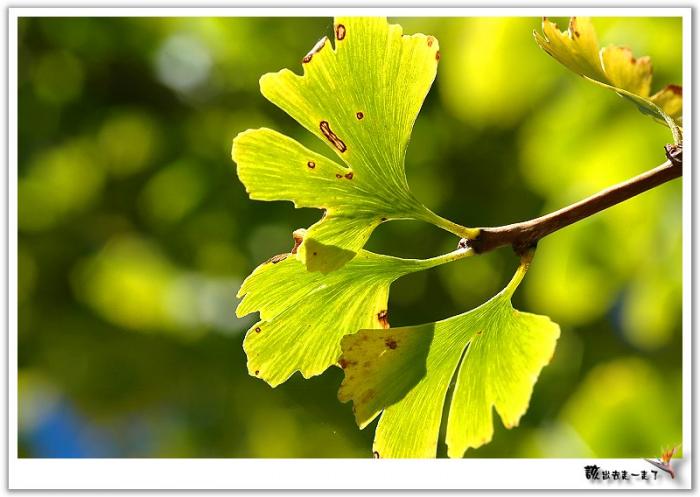 二萬坪車站旁種了幾株海芋,映著陽光真是美艷動人;活動中心旁幾棵小小的瑪格麗特,也顯得可愛異常;活動中心前有幾棵銀杏樹,樹葉雖然沒有變成金黃,但她的紋路清晰可見 ,透視感十足;楓葉隨然沒有變紅,但也帶著濃濃的秋天的氣息