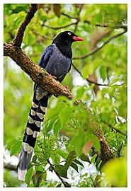 1 不論有無賞鳥嗜好,當台灣藍鵲離你近在咫尺, 舞動迷人翅膀,一隻接一隻從眼前緩緩飛過,目光 很難不被此美麗景象所吸引。 2月25日,與妻第三度來到陽明山前山公園 (前兩次曾拍到五色鳥、紫嘯鶇&綠繡眼),目的 就是想再尋找去年被