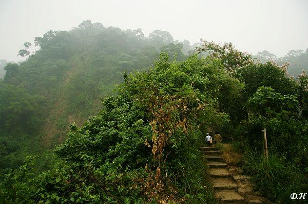 順時針走,即從大覺寺旁左側的攤販區道路直行到底,即開始蜿蜒上山。逆時針走,就從大覺寺右側小路先到鳳儀宮再開始起登。大致上都是沿著窄稜而行。既是窄稜,邊坡無甚遮蔽,展望頗佳;日落霞雲美。眺望一望無際的平原,以及近處神農池大小池塘,頗能自得。不愧為古鳳山八景「翠屏夕照」之所在