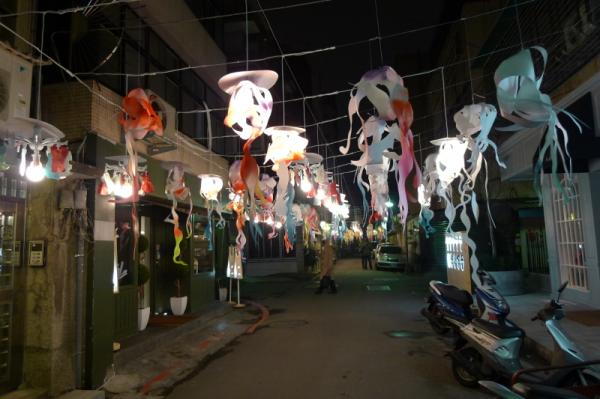 如果,你不想去國父紀念館人擠人,一起去捷運中山站線型公園,欣賞各個藝術家設計的公共藝術燈節作品,欣賞台北的巷弄美學吧!