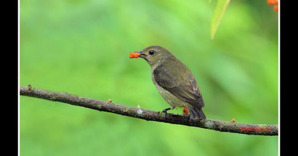 綠啄花是台灣最迷你的鳥,身長僅8公分(綠繡眼11公分),為不普遍留鳥。新店廣興山區每年4、5月間水麻結果時,是北部鳥友拍攝綠啄花的最佳時機,今年陸續來了四次,前兩次天氣晴朗,鳥況不佳,詢問有經驗的鳥友後,才知綠啄花較喜歡在陰天或雨天前來覓食。