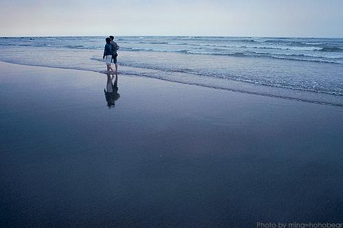 天氣陰陰的,三三兩兩的遊客點綴著沙灘