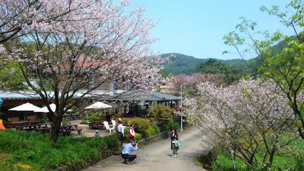 乘坐公車,可在『劍潭捷運站』,轉搭小19公車,在「法輪禪寺站」下車,往回走至「橘」餐廳欣賞櫻花,亦可再順路下行,循泥土徑,可抵達一座私宅,這裡櫻花也很美,可惜只能遠觀。