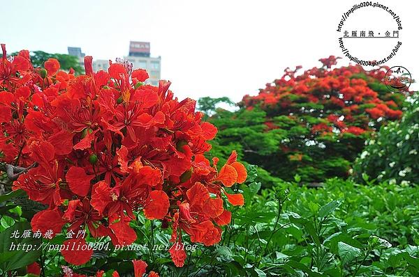 國美館與台中市立大墩文化中心比鄰,兩個緊鄰的單位間有一條「梅川」。「梅川」曾經進行景觀工程,沿岸的植栽與造景設施雖然有許多現在已經毀損,不過整體景觀現在看起來還不錯,而且四時花開不斷。現在正是鳳凰木盛開的時候,正適合作一次城市小旅行。
