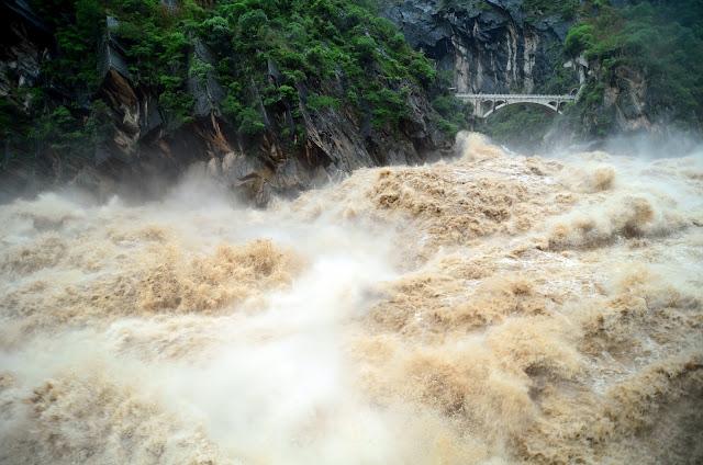 虎跳峽所在的位置,北側是隸屬於迪慶藏族自治州,哈巴雪山的山腳,南側則是屬於麗江市,玉龍雪山的山腳。從麗江市的方向,亦有一條步道可通往上虎跳(但無法通往中、下虎跳),不過事實證明,千萬別在做大水時去那條步道。