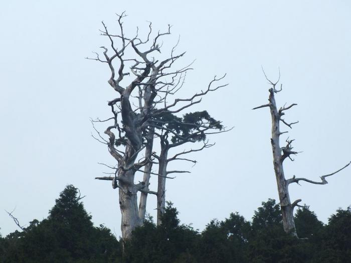 著名的太平山莊紅葉步道上種了不少的紫葉槭,這是太平山最著名的步道。紫葉槭的葉子除了冬季外皆呈紫紅色,四、五百階的紅葉步道經常都是楓紅的景致。可惜今天的紅葉步道上卻是光禿禿的一片,葉片落盡只剩枝幹,一片秋風蕭瑟的感覺。