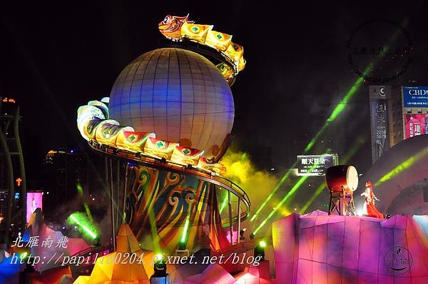 台中燈會這次主燈是「靈蛇護珠」,外觀是一條長27公尺的靈蛇盤繞著明珠。主燈秀除了聲光效果外,還有真人擊鼓秀。隨著靈蛇爬高,鼓手也同時進行擊鼓表演。激昂的鼓聲宛如霹靂聲響,不但喚醒沉睡十一年的靈蛇,也激盪著每個人的心。