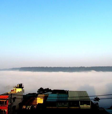 岸邊的順時埔 整個讓雲霧給淹沒了