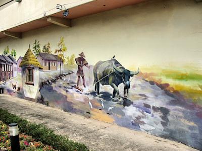 小社區若要吸引他人注意,首先就是要有特色,要發揮特色則要社區住戶們齊心打造,位在桃園蘆竹的小村落坑口村,算是北部較少見到的彩繪村, 印像中接觸過的彩繪社區,就只有南投魚池的社頭社區,同樣是在村落的民宅牆壁上,進行大壁畫的彩繪創作,當漫步或騎行在彩繪村落中,一個轉彎就會有個驚奇, 蘆竹坑口彩繪村算是小規模的,非常適合散步方式遊覽。 社區村落很努力的在營造自己,但是前往坑口彩繪村的指標卻找不到,