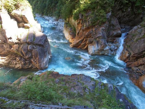 立山黑部的阿爾卑斯路線,是國人前往日本旅遊時喜愛的目的地之一。從長野縣的信濃大町與富山縣的富山市之間,經由巴士、地面纜車、空中纜車、步行、電車等八種交通工具,讓人可以從平地直上高山,享受海拔從低到高的各種風光。其中必經的黑部水壩,遊客更是摩肩接踵。在壩頂上漫步,看那憑空誕生的黑部湖,讚嘆於人力改變環境的偉大工程之時,熟悉的鄉音總能風送到耳。但是若將視線轉向下游,陽光透過觀光放水的霧氣,形成跨越溪谷兩道彩虹,在其後方,可曾想像到峽谷的深處,竟然藏著一條步道呢!