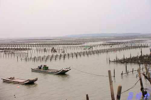 七股潟湖 是台灣西南沿海 最大的潟湖 一葉扁舟 點綴著蚵架 寂靜中 彷若時光凍結~