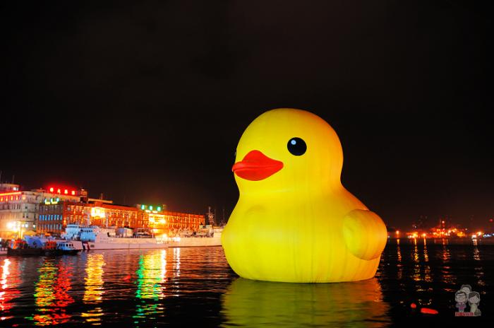 襯著夜色,來到海洋廣場,伴著沒有星星的夜空賞鴨趣。