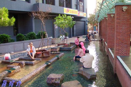 晨曦中的湯圍溝 少了熱鬧活潑的氣氛 多了恬靜悠然的味道 一大清早 公園裡 已經有零零星星的遊客 享受泡腳樂了~