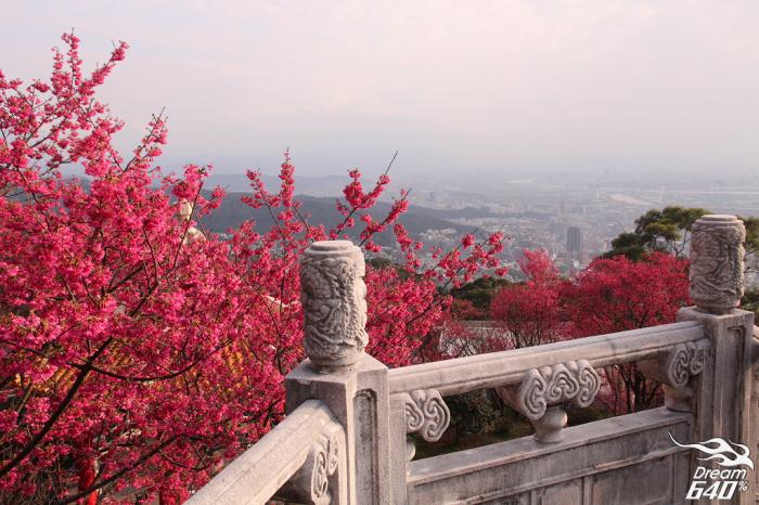 在太擁擠的城市畫布上,繽紛著一片櫻花海,吳氏宗祠的位置居高臨下,你可以盡情的從黃昏拍到夜景。