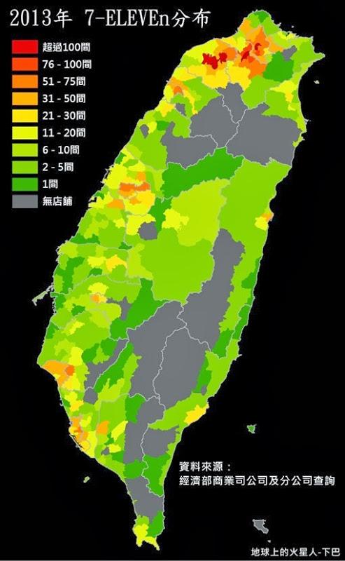 上個學期修了在碩士班的最後一堂課,是周學政老師開授的「市場地理研討」。對於市場這玩意兒,我這個專攻地形的人還真是感受到一個頭兩個大,其內容與市場經濟較為相關,而和地理的關聯性較弱,然而,這門課有個期末作業,還是要試圖把市場經濟與地理之間做出一點點關聯性。我們這一組分配到的作業是「統一超商」,也就是俗稱小七的7-11便利商店。透過兩個部分來探討7-11在台灣的發展,首先是利用歷史新聞來找到各個時期7-11的經營策略、產品樣態,試推7-11到底希望讓便利商店變成什麼模樣;接著再利用經濟部商業司的公司及分公司基本資料查詢系統,找出7-11的店鋪開設、關閉時間以及地點,藉以了解店鋪的空間分布。