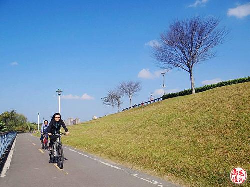 這麼好的天氣,在河濱步道上已經有許多愛好單車民眾恣意御風遨遊,享受這藍天白雲下無拘無束的世界。