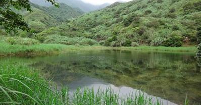 池上青蜓飛,涼風徐徐吹 池畔蔓草湮,水中山影現 (俯瞰稜尾端黃金池) 車行濱海公路台2省道79.6k處左邊空地停車起步(08:33)(H20m)-空地平台(08:47)(H40m)-黃金池(09:37)(H70m)-折返點(09:50)(H90m)航跡檔gdb:https://docs.