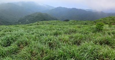 遠眺層巒疊嶂,看不到山盡處 近望茫茫草海,找不到來時路 (黃金十五稜-草山稜) 車行濱海公路台2省道-過鼻頭隧道-和美一號橋前右轉北勢坑產道-福德廟旁停車起步(08:00)(H200)-山頂旗竿(08:32)(H330m)-小山頭(09:00)(H430m)-焦炭