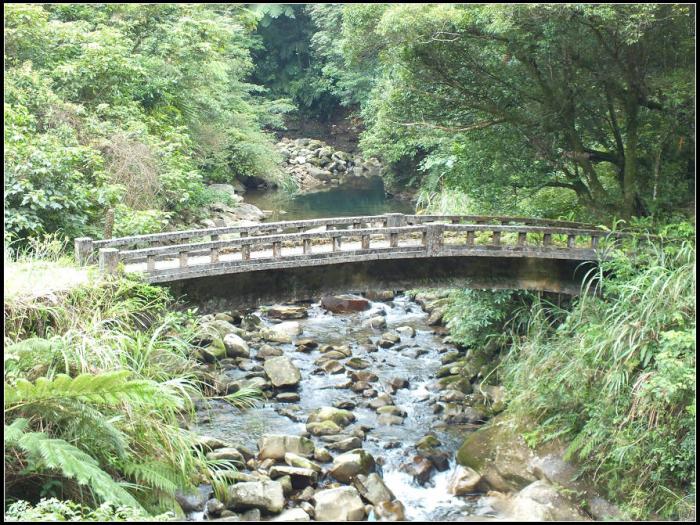 和平橋凌空跨越彎曲的溪谷,是座仿日式風格的一座美麗的小橋,橋下溪尾寮溪水婉約慢流,時間景物彷彿還停留在那個年代,然這座橋似乎也已容入在這大自然中。在當年雙泰產業道路未開通前,它是料角坑一帶居民往返泰平、雙溪古道上必經之路。