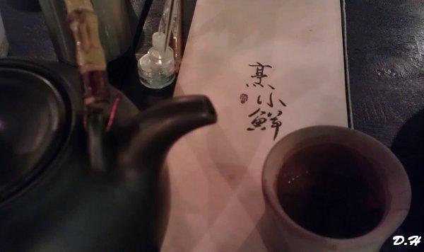 上菜前有一壺茶。老婆點了腿庫飯、醉雞麵線(涼的),臭豆腐。都是精緻爽口,小而美的一餐,不負烹小鮮之名