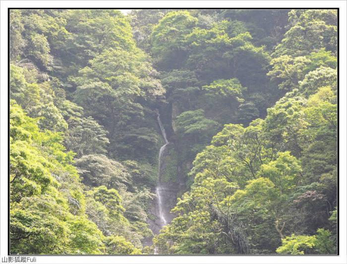 大粗坑聚落後一路有溪水相伴,谷間林木翠綠,蟲鳴鳥叫好不輕鬆,一路下至大粗坑古道 入口的半嶺路底。古道入口右邊的林間山壁上,有一道細小白絲自山巒峭壁上懸留下來,輕如白絹,這就是流進大粗坑溪的「菜刀崙瀑布 」。