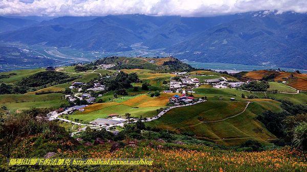 花蓮縣富里鄉六十石山為台灣金針之五大栽培區之一,又有小瑞士之稱~ 每年七月底到9月中的金針綻放,滿山金黃花海,在陽光下非常耀眼~ 非花季的六十石山則是滿山開滿了紫花藿香魝,小小紫花遍佈在於山丘上,呈
