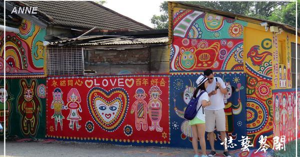 「彩虹眷村」位在台中嶺東科技大學旁,不屬於公有眷村,早年是由九位老兵自己籌錢建造的六幢建物,形同違建戶,產權複雜。為了配合鄰近的三個眷村改建政策,包含「馬祖二村、台貿五村、干城六村」(目前已拆除),規劃為都市更新重劃用地,面臨拆除的命運。眷村彩繪是其中一戶老兵黃永阜先生的作品,非常可愛詼諧,童趣十足,因為這些天馬行空五顏六色的創作,吸引了眾人的目光,也改變「彩虹眷村」被拆除的命運。