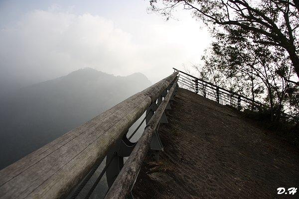 鐵達尼岩顧名思義就是一像船首的大尖石,本日無人扮演傑克和蘿絲。本來想派登山杖充數,但又怕登山杖滾落腳下的萬丈深淵-阿里山溪。對面是氣勢雄偉的大塔山