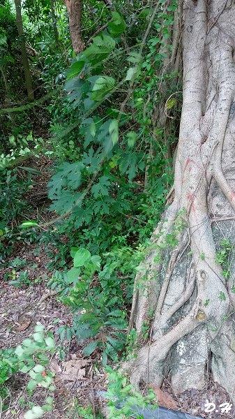 走出大門,這回專心尋找,果然在邊坡看到基石登山口。那我前幾次路過怎麼都沒發現。真的,是眼睛業障重。