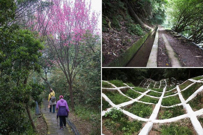 上次來到貴子坑,已經是2013年2月的事情,當時櫻花盛開,繁花似錦,把貴子坑妝點得好生熱鬧。此次前來,櫻花季已經進入尾聲,步道大環境雖未改變,但幾個地方如貴子坑水土保持教學園區門面已換,坪頂圳步道路段崩塌變得比較嚴重,也做了不少邊坡保護工程,露營區裡面的地質觀察棧道已經修復完成,生態池不知何時改名為情人湖,飄散著水質過於營養的氣味。