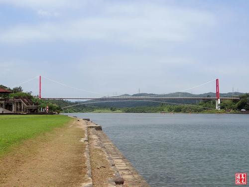 吊橋下有人泛游獨木舟,也有人持竿垂釣,大家各取所需,反正就是一付悠閒快哉!