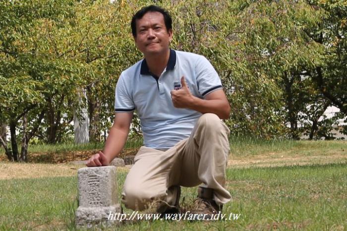 到了城址,本來興奮的心情頓時化為烏有,因為完全沒任何建築,只是空地一片,而且佔地不大,就算有心重建,也不會有甚麼看頭。幸好還有一顆三角點基石,但背面完全無文字,以台日三角點的共同之處,只有一等三角點才有如此規格,難道這麼不高的地方竟藏有一等三角點?無解,合照做紀念便是。根據導覽圖的說明,柳川城,原先範圍還包括柳城中學校的校園,
