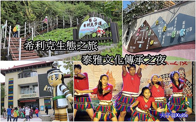 台中市和平區,梨山希利克步道,起點在梨山賓館遊客中心旁的尋梅園,終點在 Lokah 勇士營地,總長約600公尺,步道蜿蜒曲折在原生杉林間,綠蔭蔽天生態豐富,並有兩座繩索吊橋。攬勝樓在制高點,可以鳥瞰德基水庫 (大甲溪),眺望多座3000公尺大山與佳陽、環山、松茂、梨山等部落,高山美景盡入眼瞼,遼闊的視野讓人心曠神怡,讓整天盯著手機的眼睛睫狀肌,獲得充分的舒緩。晚間參加泰雅文化傳承之夜,豐盛的原民烤大豬,美妙的歌聲與舞蹈,還看見張雨生的媽媽也參與舞蹈表演。