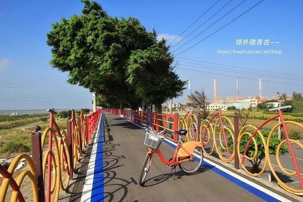 沿著烏溪北岸的大肚堤防一路往海岸騎去,單車路線接到龍井堤防自行車道,越到後邊越有臨海鄉鎮的氣息,這一帶最著名的景觀就是擁有希臘藍白建築風的麗水漁港,以及外觀宏偉到無法忽視的台中火力發電廠,再次與臺中市濱海自行車道結緣,全程卻是幾乎沒看到海,很有意思的體驗呢 ^_^