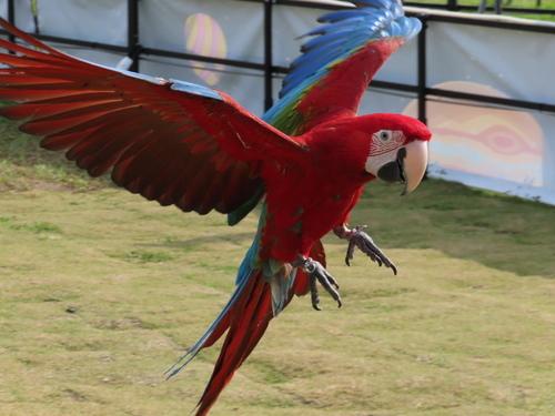 民眾飼養的大金剛鸚鵡(綠翼金剛鸚鵡),帶來燈會會場放飛。