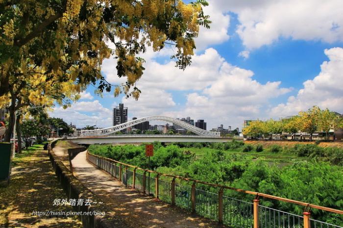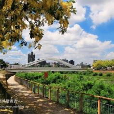 本以為就是個輕鬆寫意的單車追風行程,來到海天橋後完全變了調---盛開阿勃勒的串串黃花隨風飄曳,轉瞬化身成黃金雨霏的賞花饗宴,伴著飄落不曾止歇的點點黃花,悠遊旱溪河堤,遠眺對面河岸已成黃金大道的阿勃勒樹群,不用特地騎腳踏車過來,就算只是個輕鬆散步,也能深刻品味這段屬於台中的初夏限定絕色風光~~