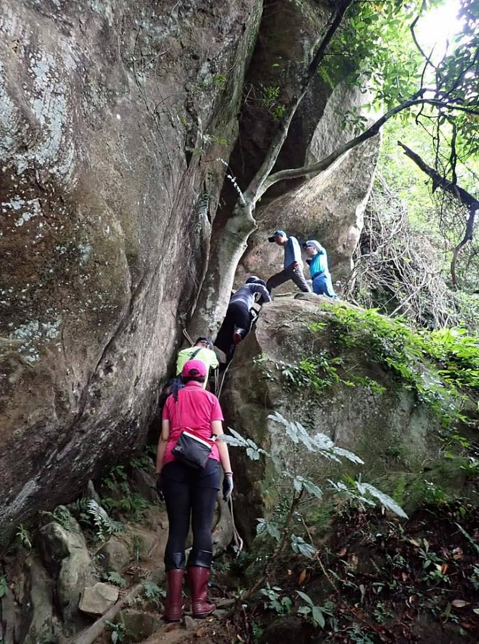 1.經過山羊洞到鞍部後,下至聖家山莊這段路,路況差需動刀整理. 2.聖家山莊至外楒子腳1號宅的外楒子腳保甲路,路況也不好, 但有帶兩把刀稍微整闢過. 1.車行石碇-碇格路二段往聖家山莊,中按橋旁停車整裝起步(08:00)-楒福宮(08:17-08:21)-山羊洞(08:53)-山頂鞍部(08:57-09:10)-聖家山莊(09:29-09:36)-外楒子腳保甲路-內楒子腳山(10:17)-中按橋(11:05)8字型走航跡檔gpx:https://drive.google.com/file/d/1PVRMqGdld_eS_XfT3-qcyG0m0CYZRDT1