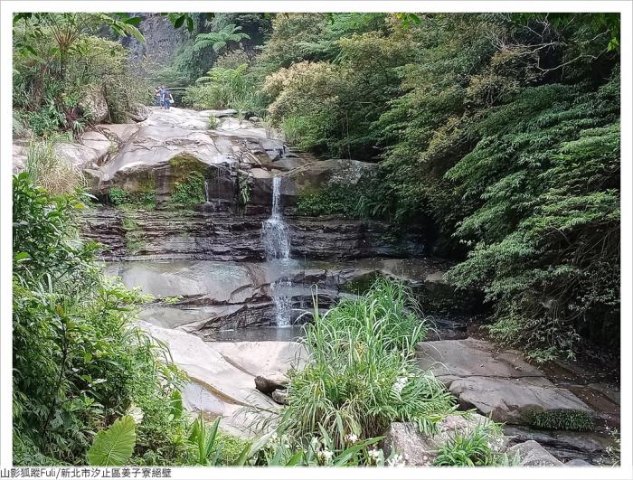 瀑布不大,高約一、兩層樓,水流由姜子寮 絕壁下的大石床沖瀉而下,在瀑布底下形成一個深水潭。