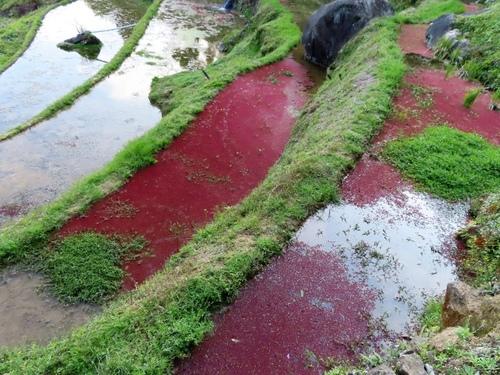 平等里寒櫻盛開,櫻花看過看大崎頭步道梯田的滿江紅。