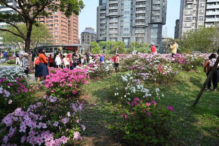 母親說大安森林公園最近有新聞在弄花海,我查了一下3月開放,不過228連假有些已提前展出,去得時候還有種花的工人在處理,主要可看的是杜鵑花海,就位在3號出口上來,滿多人拍照的,既然來了就逛一圈吧,比較有趣的是各入口進去的翅膀造型鐵柱,看了一下說明寫防蚊液,要用腳踩下面的圓圈可噴出,結果踩了沒反應,繞了一圈慢慢走也是一小時,最後回來時有個上坡,因為有大片的杜鵑花海就上去了,旁邊圍繞公園一圈的跑道,其實也滿長的,難怪很多人在跑