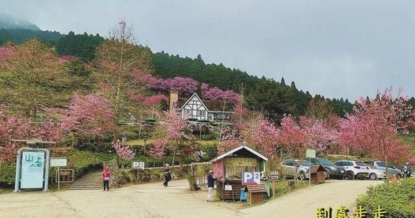 粉嫩櫻花沿著山坡綻放超級夢幻
